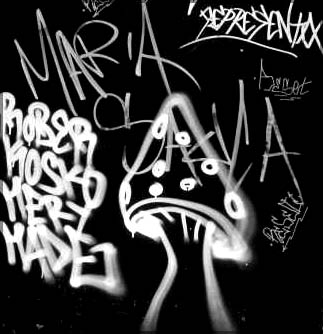 mikiki makes the frikie - with his nokia n8 photographing a wet paper on the sidewalk while looking at a lysergic graffiti |